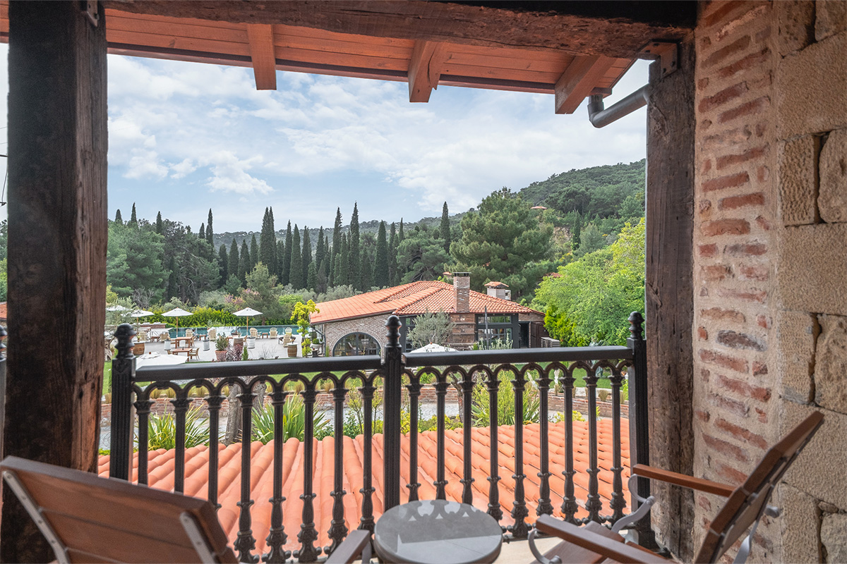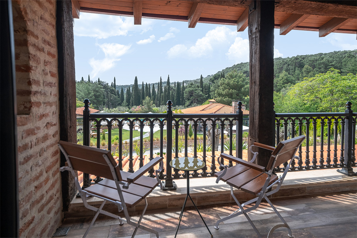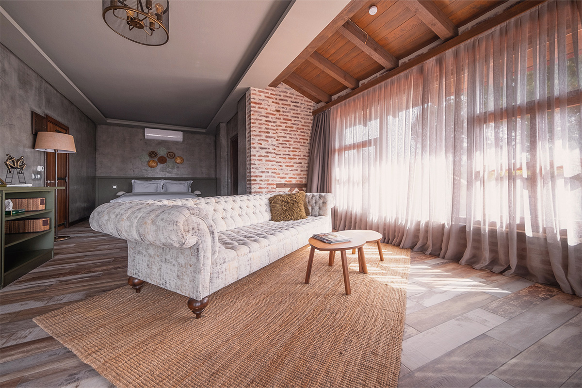 Nadas Deluxe, sizi Kaz Dağları'nın en büyüleyici manzaralarından birine davet ediyor. Yerden tavana kadar uzanan geniş pencereleri sayesinde, oda tamamen doğal ışıkla dolarken, dışarıdaki yemyeşil doğa adeta içeri süzülür. Bu özel odalarımızda, Kaz Dağları'nın görkemini, Ege'nin mavisini, havuzun parıltısını ve bahçemizin yeşilini bir arada sunan panoramik bir manzara sizi karşılar.
