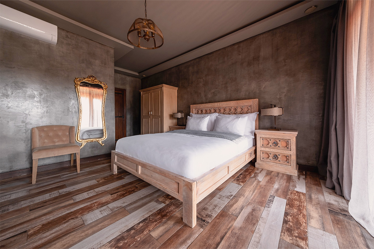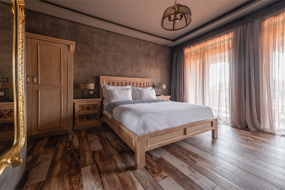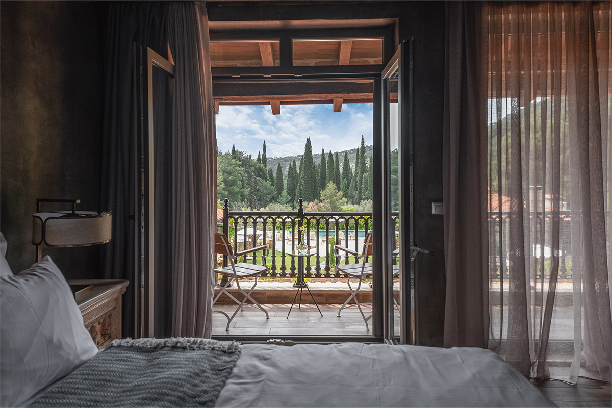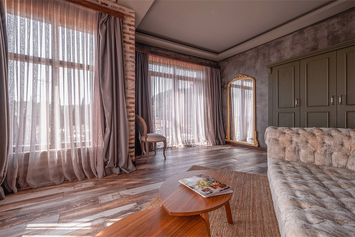 Nadas Deluxe, sizi Kaz Dağları'nın en büyüleyici manzaralarından birine davet ediyor. Yerden tavana kadar uzanan geniş pencereleri sayesinde, oda tamamen doğal ışıkla dolarken, dışarıdaki yemyeşil doğa adeta içeri süzülür. Bu özel odalarımızda, Kaz Dağları'nın görkemini, Ege'nin mavisini, havuzun parıltısını ve bahçemizin yeşilini bir arada sunan panoramik bir manzara sizi karşılar.